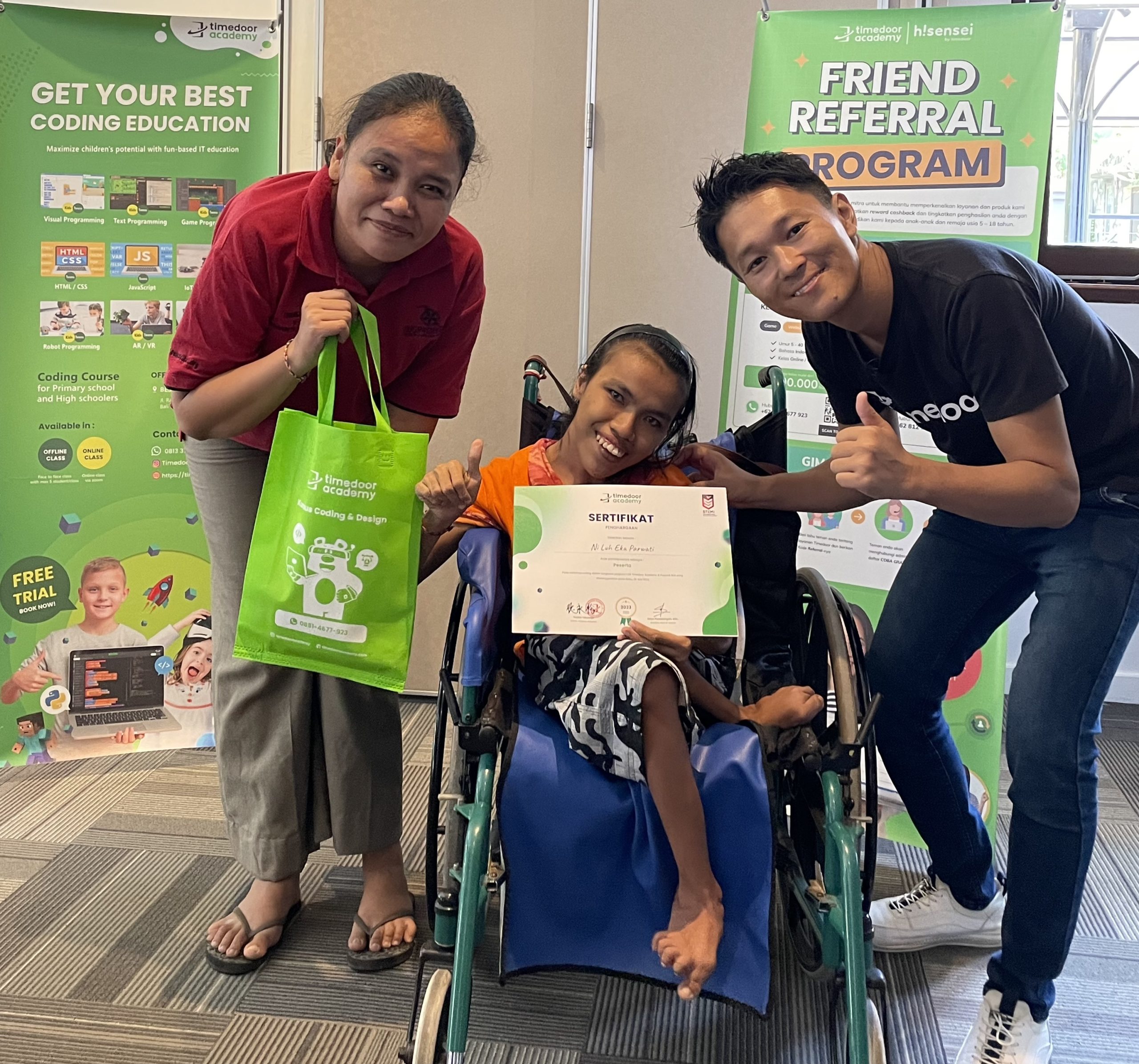 Timedoor Academy collaborates with Puspadi Bali to introduce coding to talented disabled children.
