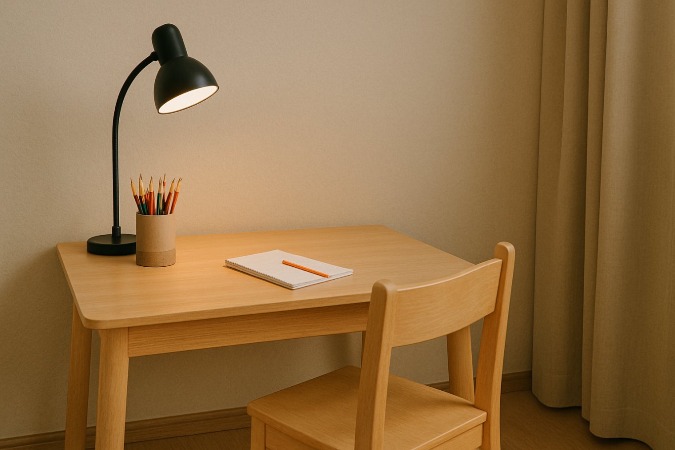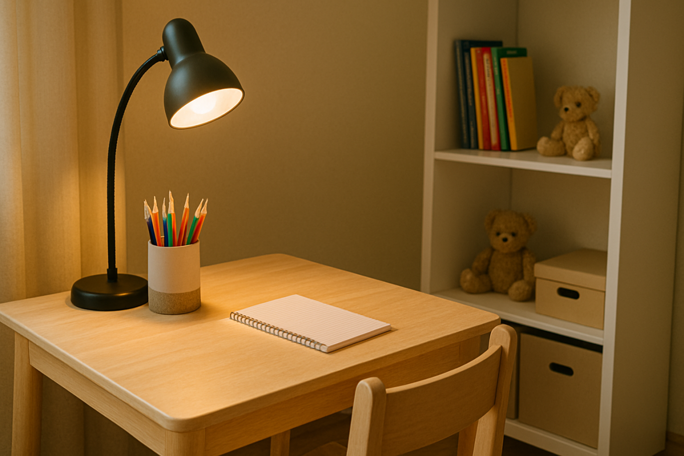 Lighting has a direct impact on mood and focus. Make sure the home learning space for kids has access to natural light during the day. For evening sessions, provide a desk lamp with bright but soft white lighting. Avoid dim lights, as they can cause drowsiness and reduce attention.
