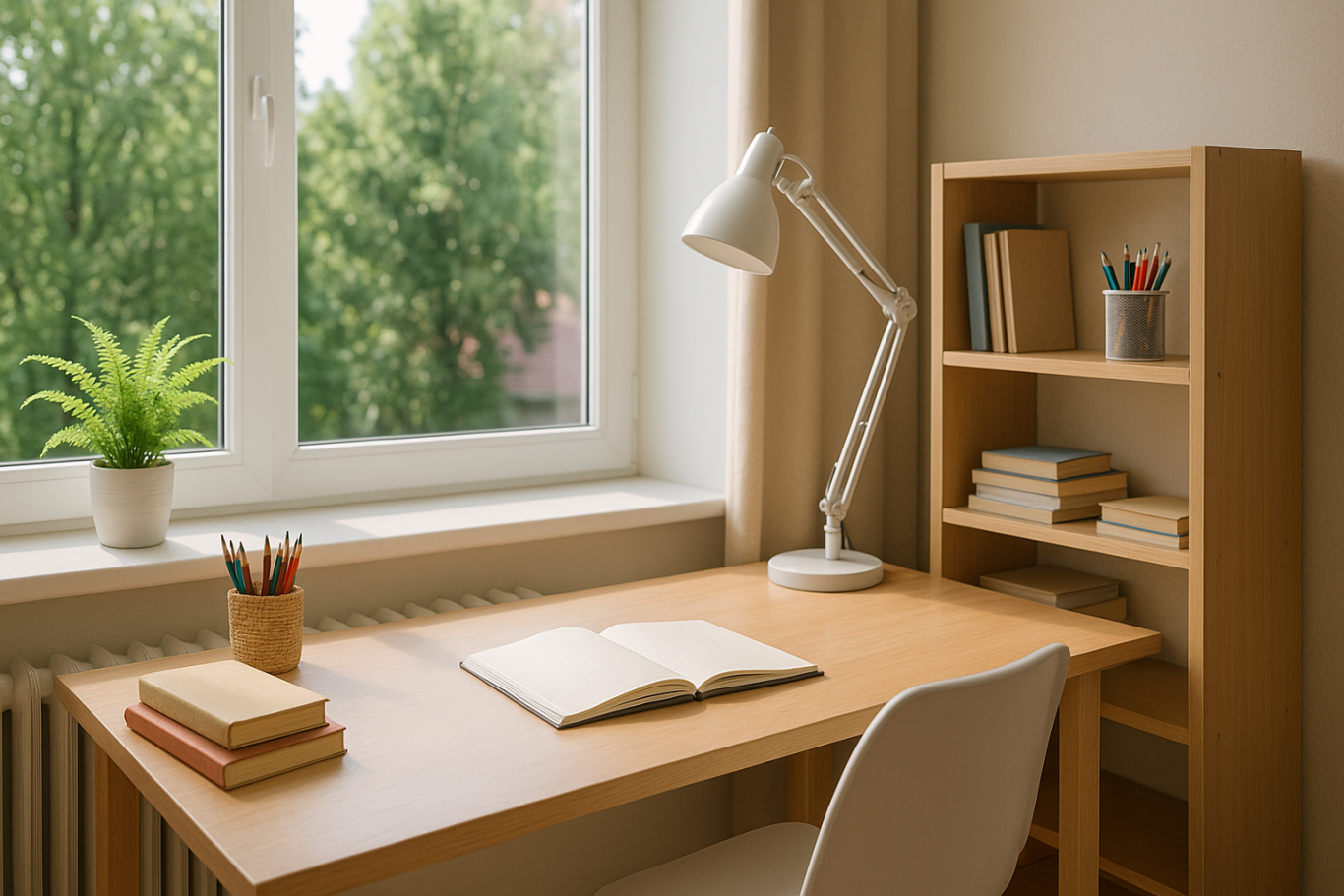 Equip the space with all the essentials: stationery, books, a laptop or tablet, headphones, and a reliable internet connection. Having everything nearby prevents unnecessary movement and keeps the child focused.