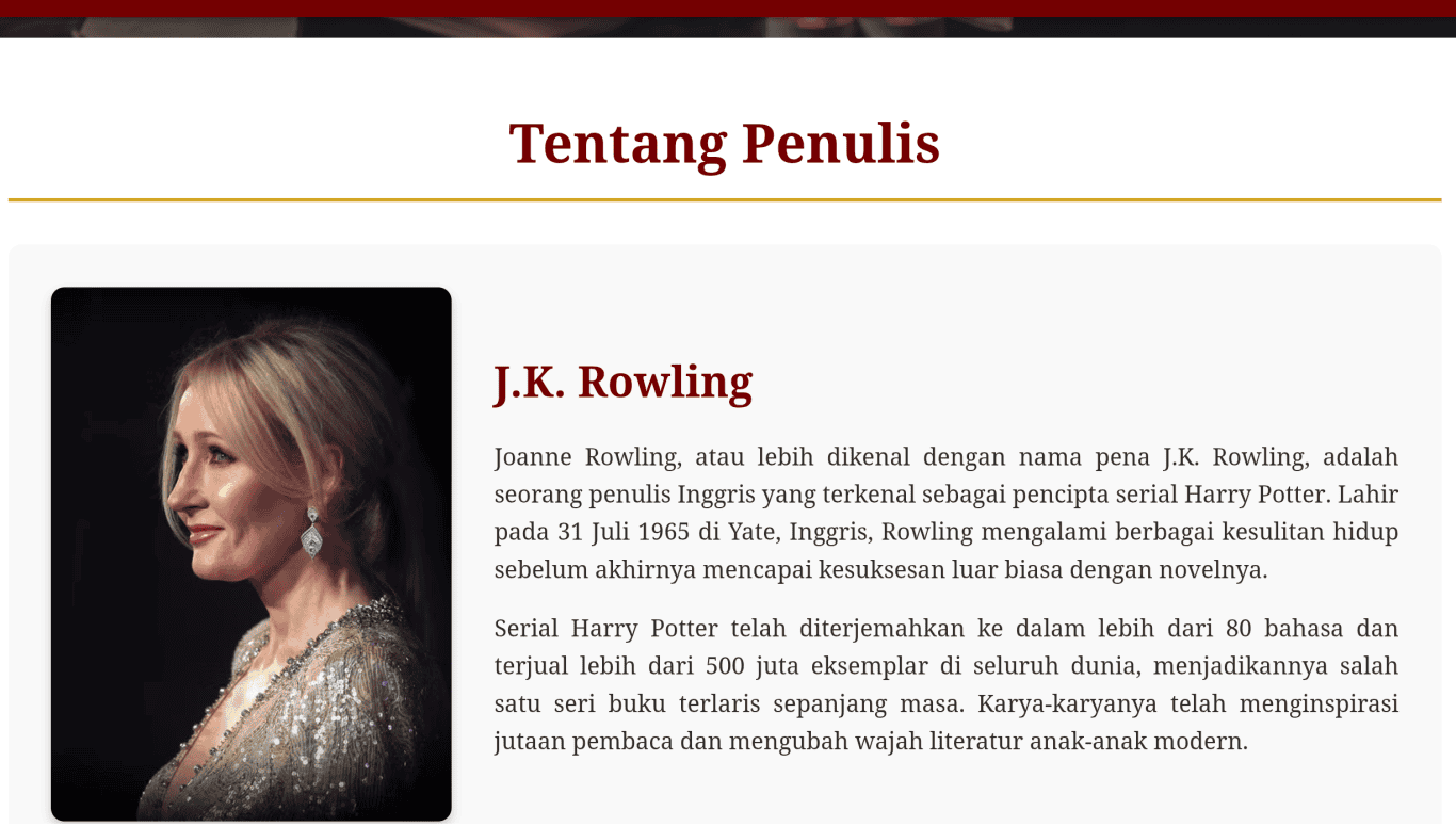 Website ini berisikan informasi seputar harry Potter, dari penulis, seri buku novel, dan seri filmnya