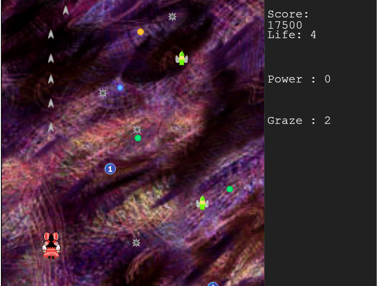 Game terinspirasi dari game tohou. Tujuan utama dari game adalah menembak musuh yang datang dan menghindari serangan musuh. Dapatkan score sebanyak mungkin.